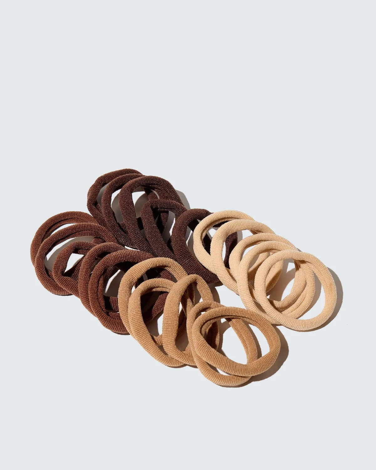 Élastiques à cheveux fabriqués en nylon 100 % recyclé avec une prise ferme mais douce.
