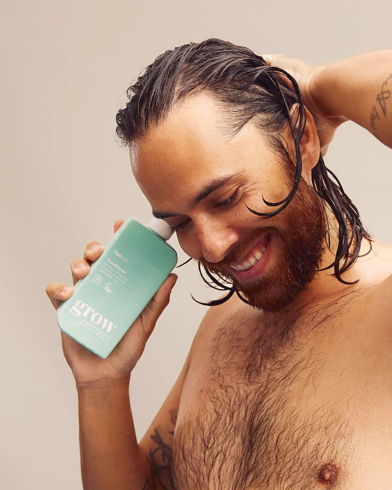Quel que soit votre type de cheveux, vous pouvez utiliser notre après-shampoing Grow Perfect™, mais il est plus efficace si vous souffrez d'un amincissement de votre fibre capillaire ou si vos cheveux sont fins et clairsemés et que vous souhaitez avoir des cheveux plus volumineux et plus épais.