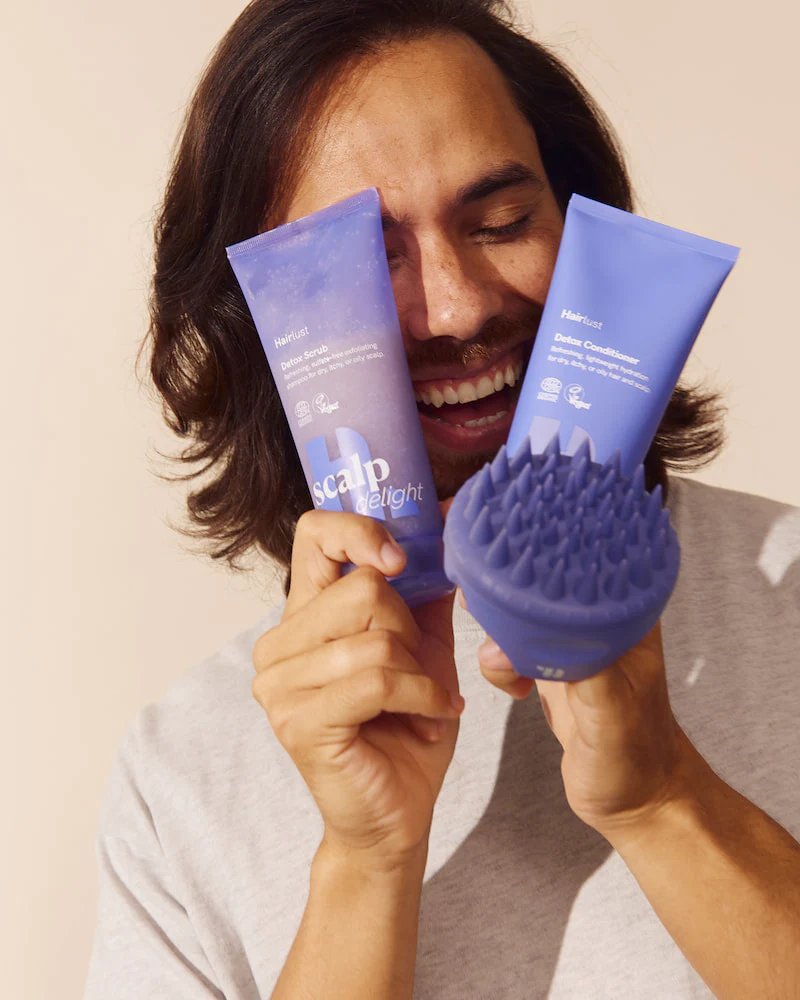 Le coffret Scalp Delight™ Bundle convient à tous les types de cheveux - tout le monde peut l'utiliser. Tout le monde a besoin d'un bon nettoyage de temps en temps ! Cependant, nous recommandons particulièrement ce coffret si vous utilisez souvent des produits coiffants, si vous avez de l'eau calcaire chez vous et si vous avez le cuir chevelu irrité, squameux, gras ou sec.